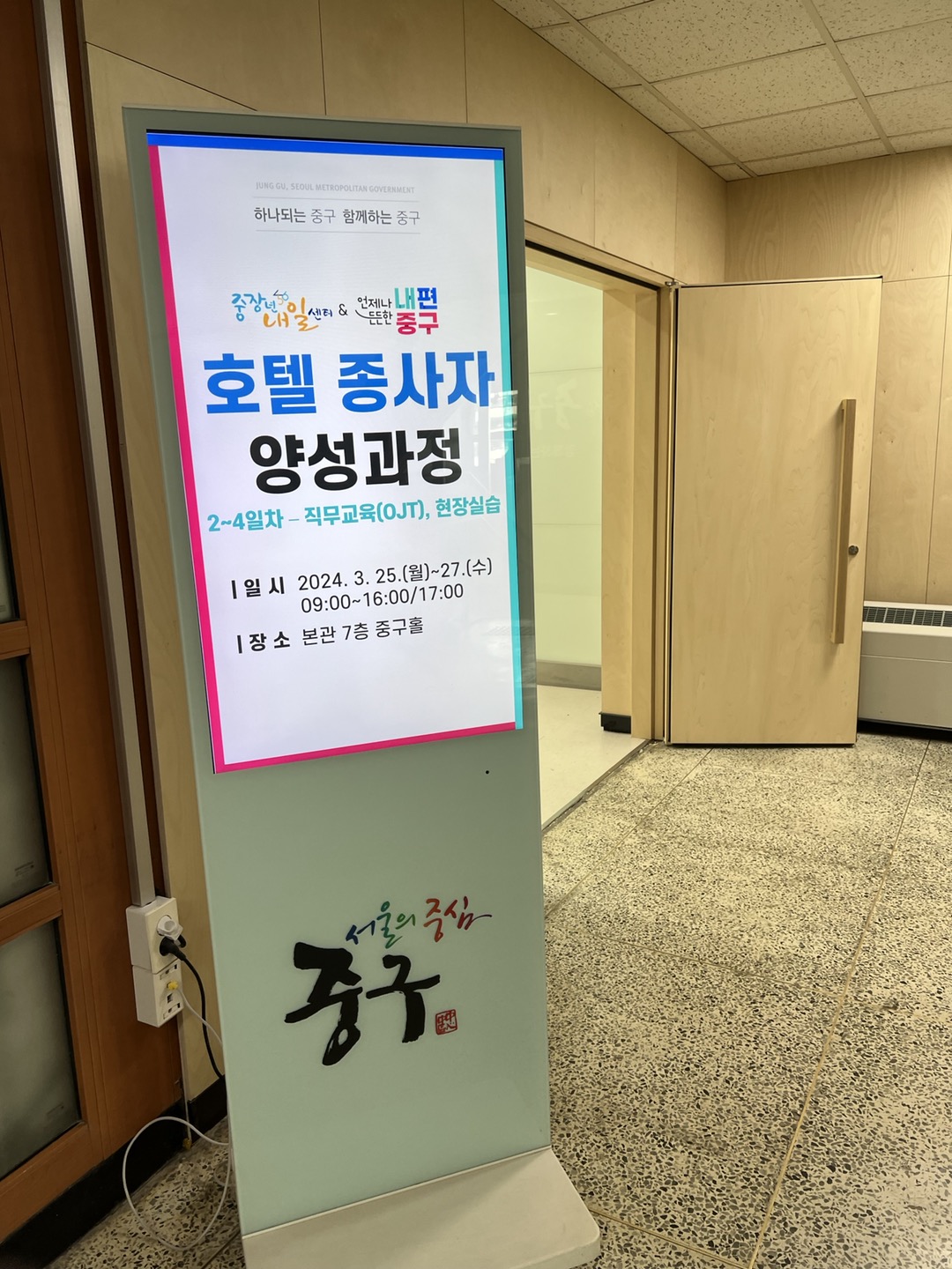 호텔 종사자 양성과정 4일차 에는 이렇게 좋은 교육을 해주는 중구청에 감사한 마음이 들기 시작했습니다.